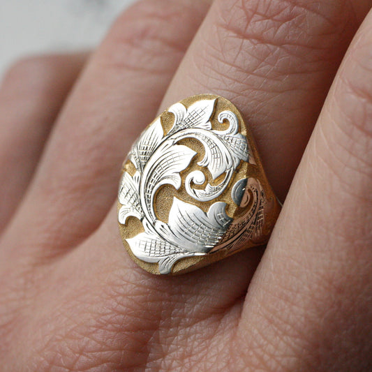 Sterling silver North/South Acanthus Signet in Two-tone size 7 READY TO SHIP