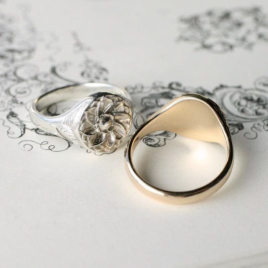 14k gold Rosette signet ring size 9 READY TO SHIP