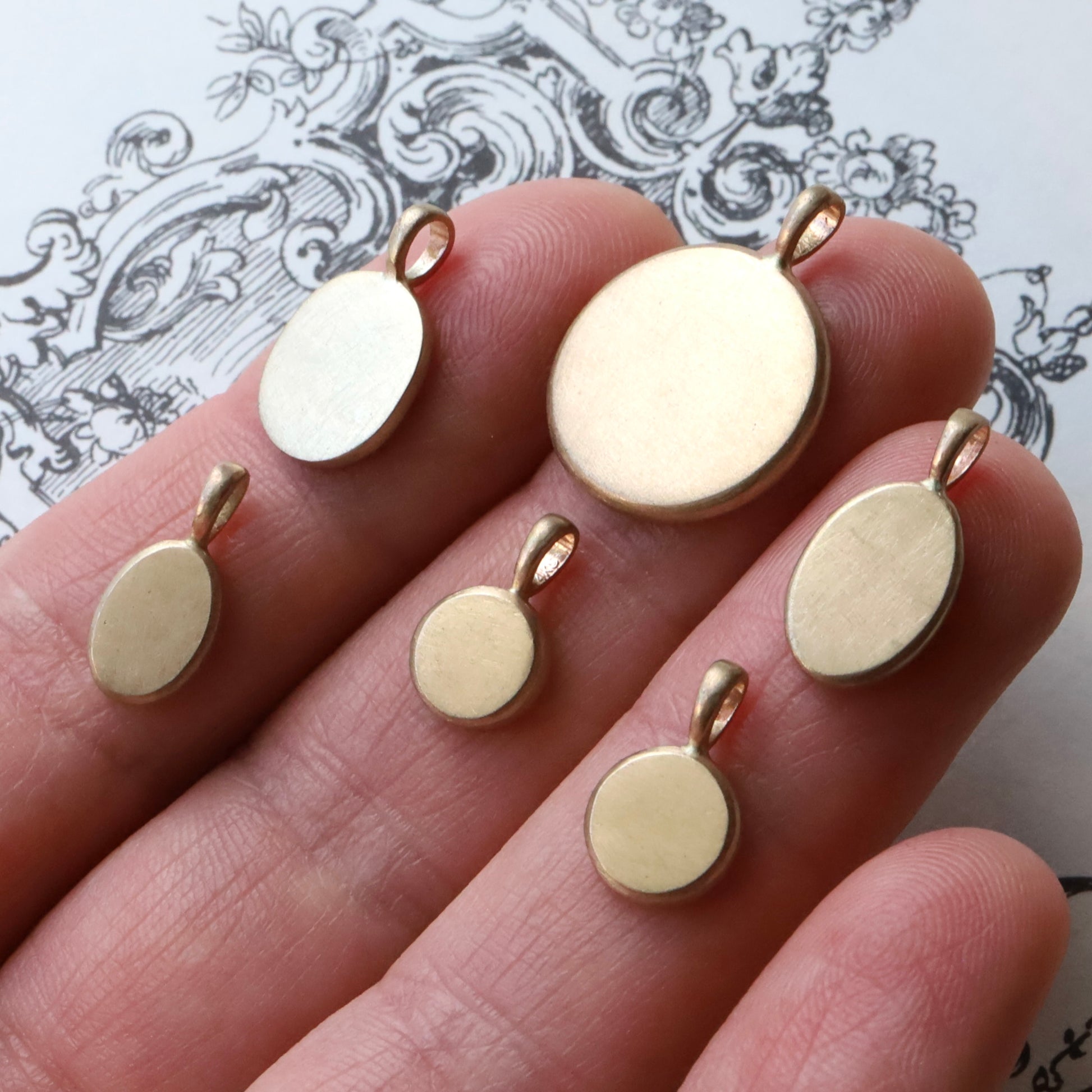 6 handmade solid 14k gold charms, ready to engrave with a single initial of your choice.