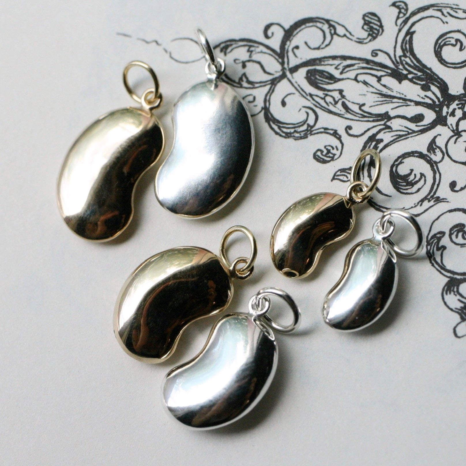 These sweet little lucky charms were based on the victorian era bean pendants that were often given as gifts to represent fertility or luck. For me, beans represent health, abundance and growth, but they can also symbolize longevity and new beginnings.