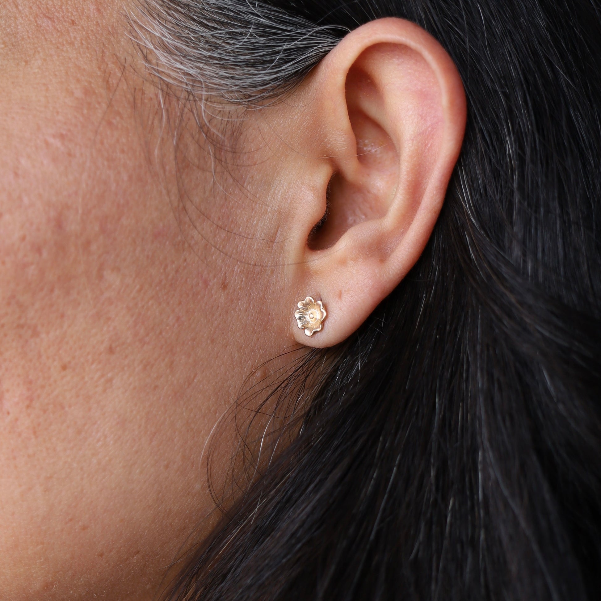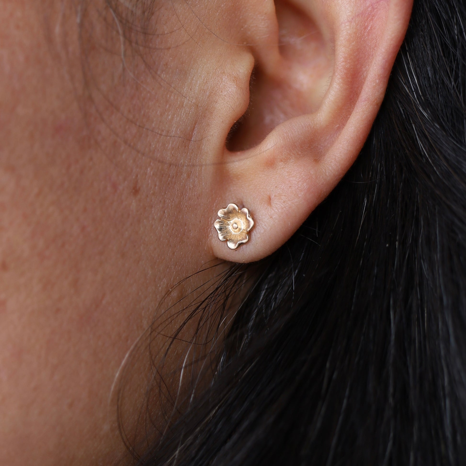 These tiny Dogwood flower studs are perfect for everyday wear. Made to order in sterling silver or 14k gold. They measure roughly 7.5mm across.